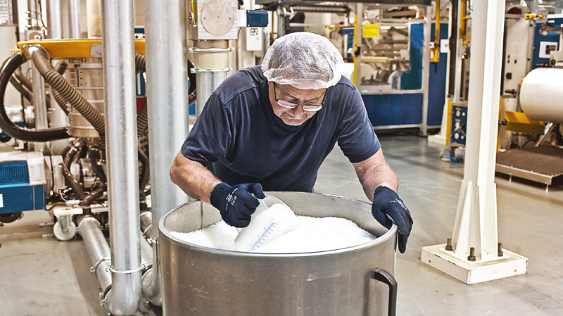 Im Coextrusionsverfahren werden unterschiedliche Polyethylene verarbeitet – und das in mehreren Schichten. Durch die Verwendung von PE-HD können diese Produkte, unter Beibehaltung der physikalischen Eigenschaften, deutlich dünner hergestellt werden. Alle von uns verwendeten PE-Rohmaterialien sind umweltverträglich und entsprechen den gültigen EU-Richtlinien für Bedarfsgegenstände im Direktkontakt mit Lebensmitteln sowie den US Vorschriften (FDA).